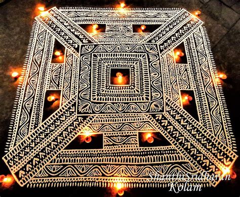 Can writing become a mandala? A linear process evoking a non-linear experience? That’s a description of poetry, is it not? A kolam is already such a mandala, in its conception, its making, its conclusion and its ultimate destruction. The symbolism of kolam may not be as complex, but to attempt to convey all of what it is in words risks becoming a sterile derivative of the experience. Can writing become mandala containing the writer, the object of writing, the reader, indistinguishable, in a single flowing fractal as much as an experience of kolam?